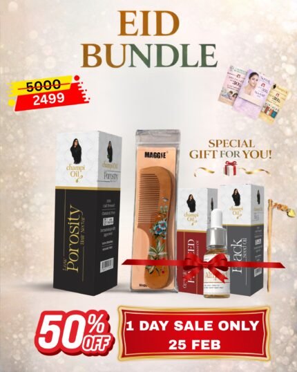 A complete Eid-ready combo featuring Gluta & Rice formula for brighter, smoother skin. Choose any 50ml or 100ml oil of your choice to personalise your hair care routine.✨🎁 Gifts Include: * Jura Stick * Wooden Comb * 1 Sample * 4 Gift VouchersKindly note: Cooking oils are not included in the Eid Bundles, as these bundles already come with multiple premium replacement gifts 🎁✨