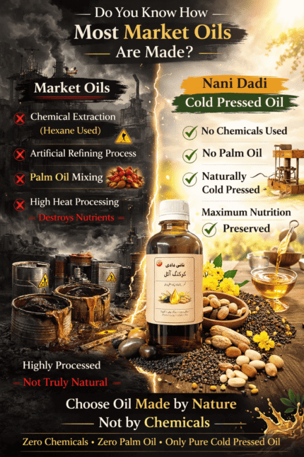 Pure, chemical-free cooking oil made from carefully selected natural sources. Cold pressed to preserve natural nutrients, flavor, and quality. Lightweight and ideal for daily cooking and frying, supporting a healthy lifestyle. Convenient 250 ml bottle, perfect for pure and healthy family meals.